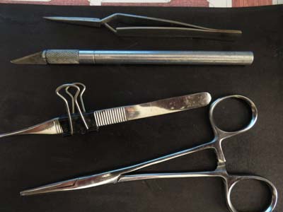 normal tweezers can be made to lock with gator clips, but whatever you use for clamps should be flat-